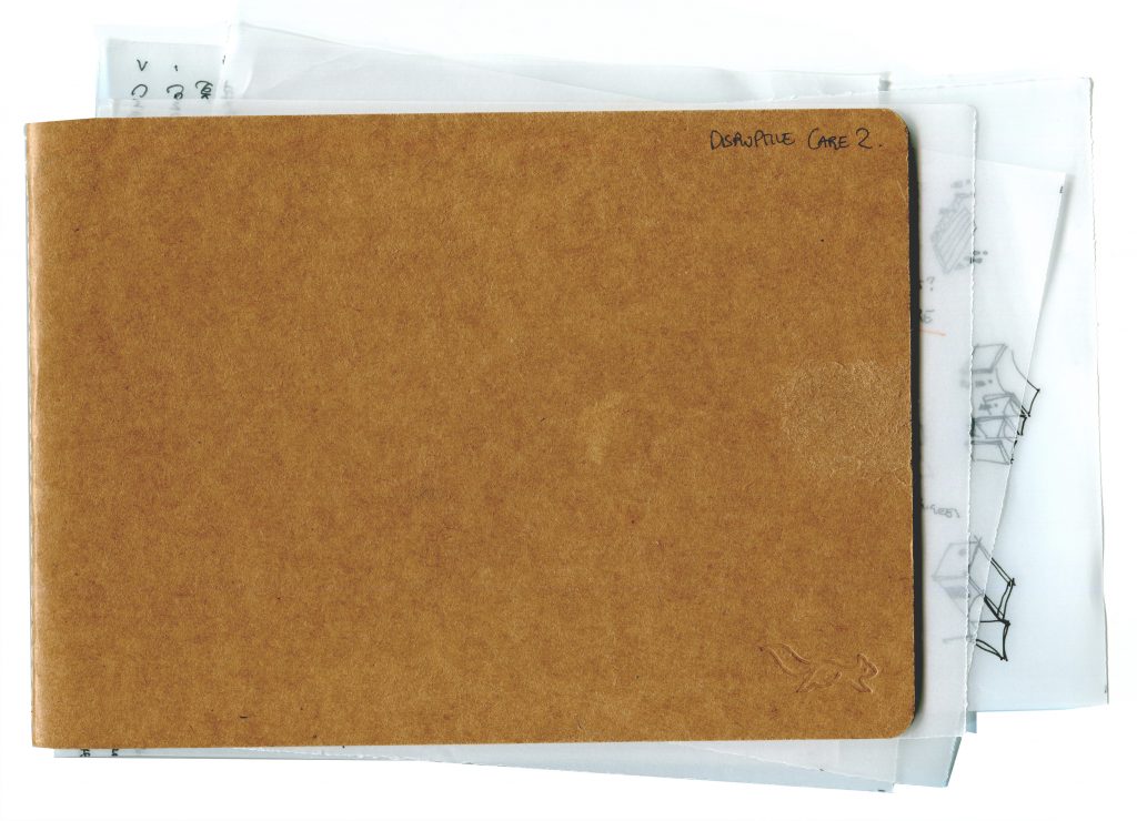 Presented as a fragmented collection of field notes, it jumps between ideas across pages and squeezes between other notes; A personal documentation of thought. The gaps between these fragments, the creative leap between ideas, are expanded with academic writing, creating a dichotomy that represents the ‘transposition’ (Braidotti, 2012) I aim to embrace as a means of embodying a nomadic creative practice.